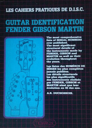 | Hal Leonard, 2008, ISBN 978-1-4234-2611-0, 88 pp. Paperback (glued). A.R. Duchoissoir is recognised as an expert in the field of guitars, both with regard to history and identification. This book is a painstakingly researched guide for identifying (and dating) Fender, Gibson, Gretsch and Martin guitars. |