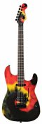 | Remarks: The retro tie-dye patterns that adorn these guitars are taken from real T-shirts. They have locking tuning machines, 22-fret neck, two-point tremolo and custom pickup configuration. The red/orange colour is "Band of Gypsys", the blue one is called "Hippie Blue". | ||
