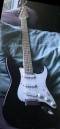 | Remarks: Sometimes you just want to slap someone in the marketing department of Fender. Such a person would be the one who decided that it would be nice to use the "Starcaster" name (a vintage Fender acoustic/electric instrument) for a joint venture with Costco to produce the cheapest Stratocaster clone you'll ever see. It seems that these guitars were made in a SSS and HSS configuration, that they were pretty OK quality-wise (but below Squier), and that they were very, very cheap. They don't do much more than $100 on Ebay, and I've seen them sold for $250 new including amp. Alder body, black sparkle finish (a.k.a. agathis). In 20 or 30 years they will probably fetch a lot of money on account of their unusual headstock and the fact that not that many appear to have been made.