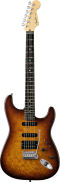 | Remarks: The Special Edition Koa Stratocaster guitar marks the first time that Fender has used exotic and highly sought-after koa wood in an instrument outside the Custom Shop models. The guitar features a koa veneer atop a basswood body, with a Light Burst Rosewood finish, modern C-shaped birds-eye maple neck, rosewood fingerboard, Seymour Duncan alnico Pro II pickups, a two-point synchronized tremolo, and pearl pickguard and dot inlays. | ||
