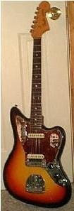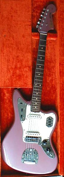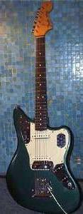 | The Jaguar first appeared in 1962 and was produced as a standard model up to 1975. It was an improvement on the design of the Jazzmaster and took its place as the top of the line model. It was the first Fender guitar with 22 frets instead of the usual 20. | |||
