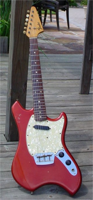 | In 1969, Fender introduced the short-lived Swinger, of which only 250 were made. It was made of left-over and modified Mustang and Musicmaster parts. It was marketed as another cheaper, short-scale 'student' type guitar. It's also known as Arrow or Musiclander, and was discontinued after one year of production. | |||