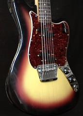 | From 1965 to 1968, Fender produced the Electric XII, a guitar designed especially for the purpose of being a 12-string guitar. There are 12 individual string saddles in the bridge. It was notoriously difficult to tune, and instantly recognisable because of its 'hockey stick' headstock. | |||