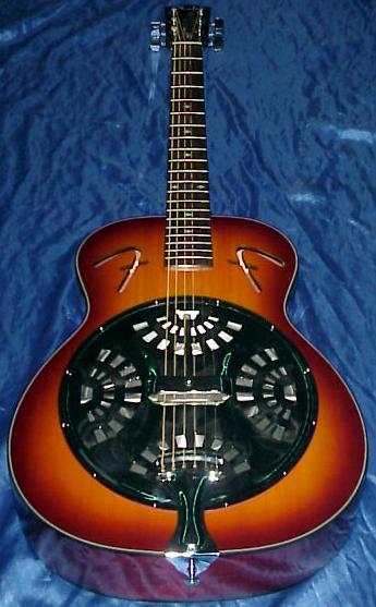 | Remarks: Spruce top, mahogany back and sides, chrome resonator and Fender custom "f" holes. Sunburst finish. Larger picture |