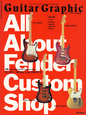 | Rittor Music (Japan), April 1998, 148 pp. "Guitar Graphic" magazine ran for 9 issues and is, basically, fantastic guitar porn. A great variety of memorable, vintage, odd, bizarre and fantastic guitars are featured in its pages, including period advertising. Most of the text is in Japanese. Nearly 60 pages of Custom Shop info here, with a "behind the scenes" section. Wonderful. | |
