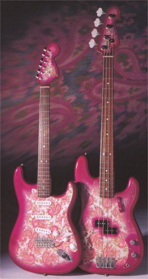 | Type: Pink Paisley Stratocaster and Precision Bass set (year unknown) | ||