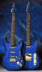 | Remarks: These guitars feature blue Moto ("mother of toilet seat") overlay, and gold hardware all over the place. They also have custom pickups and electronics. | ||