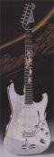 | Remarks: Designed and built by Mike Ponce. This beautiful Stratocaster has a diamond plate pickguard and headstock overlay with lug-nut strap locks. At the twelfth fret marker there's an inlay of stainless steel of two stylized women. | ||