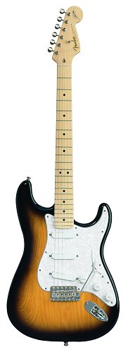 | Remarks: The Eric Johnson Signature Model Fender Stratocaster guitar is built from a light 2-piece alder body, dressed in a very thin nitro cellulous lacquer finish, and the 1-piece quarter-sawn maple neck sports a 12 inch fingerboard radius, 21 frets, and a soft "V" neck profile. Additional features include staggered vintage style machine heads, thus eliminating the need for a string tree, custom pickups with countersunk screws and wound to Eric's specifications, and highly contoured body and neck. It comes with a parchment '57 style pickguard, 5-Way Switch, Master Volume, Neck Tone and Bridge Tone controls, and a Vintage Tremolo with 4 tremolo springs, silver painted block and '57 style string recess with no paint between base plate and the block. It is available in four different finish options: White Blonde, Two-Color Sunburst, Candy Apple Red and Black. |