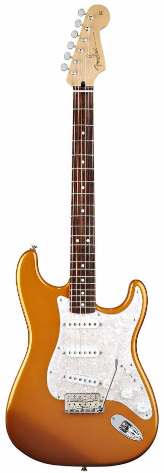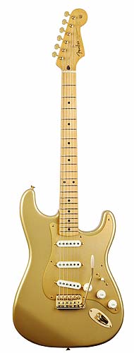 | Remarks: This guitar celebrates the legacy of the most sought after guitar in history. Fender only offered this guitar during 2004. Along with the Classic Series Strat guitar�s standard appointments, it featured an Aztec Gold finish, gold hardware, gold anodized pickguard, 50th Anniversary laser-etched backplate and a deluxe 50th Anniversary Vintage Tweed gig bag. | ||