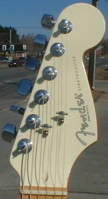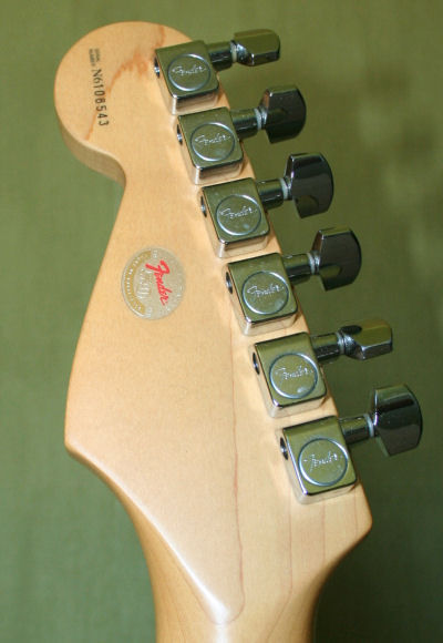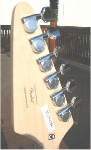 Click here for a detail of the body of the HSS "Fat Strat" version. Click here for a detail of the front of the headstock. Click here for a detail of the back of the headstock. |