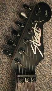 | Remarks: You can clearly see the different Strat logo in the headstock detail. Other features include a 24 fret maple neck with rosewood fingerboard, basswood body, double-locking Kahler "Spyder" tremolo, black hardware with Gotoh tuners, 1 humbucking and 2 single-coil pickups. | ||