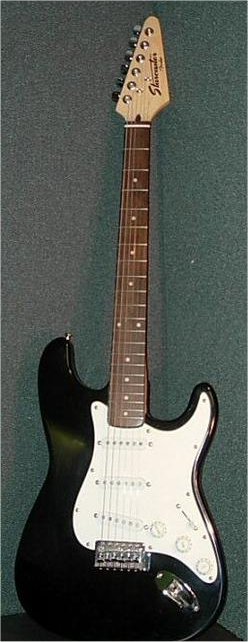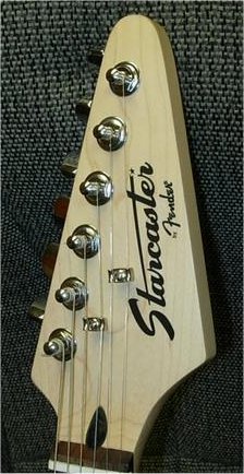 | Remarks: Sometimes you just want to slap someone in the marketing department of Fender. Such a person would be the one who decided that it would be nice to use the "Starcaster" name (a vintage Fender acoustic/electric instrument) for a joint venture with Costco to produce the cheapest Stratocaster clone you'll ever see. It seems that these guitars were made in a SSS and HSS configuration, that they were pretty OK quality-wise (but below Squier), and that they were very, very cheap. They don't do much more than $100 on Ebay, and I've seen them sold for $250 new including amp. Alder body, black sparkle finish (a.k.a. agathis). In 20 or 30 years they will probably fetch a lot of money on account of their unusual headstock and the fact that not that many appear to have been made.
