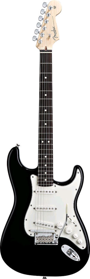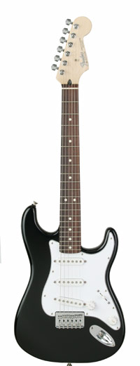 | Remarks: Modern-looking Stratocaster, only available in black, with 3 vintage style pickups, maple neck, rosewood fingerboard, 5-way switch, basswood body. | ||