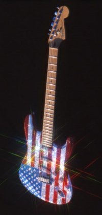 | Remarks: This 1990 Standard Stratocaster is covered in about 7000 Swarovski crystals. This custom job was performed in 2001, by a company outside of Fender. The crystals weigh about a quarter of a pound. | ||