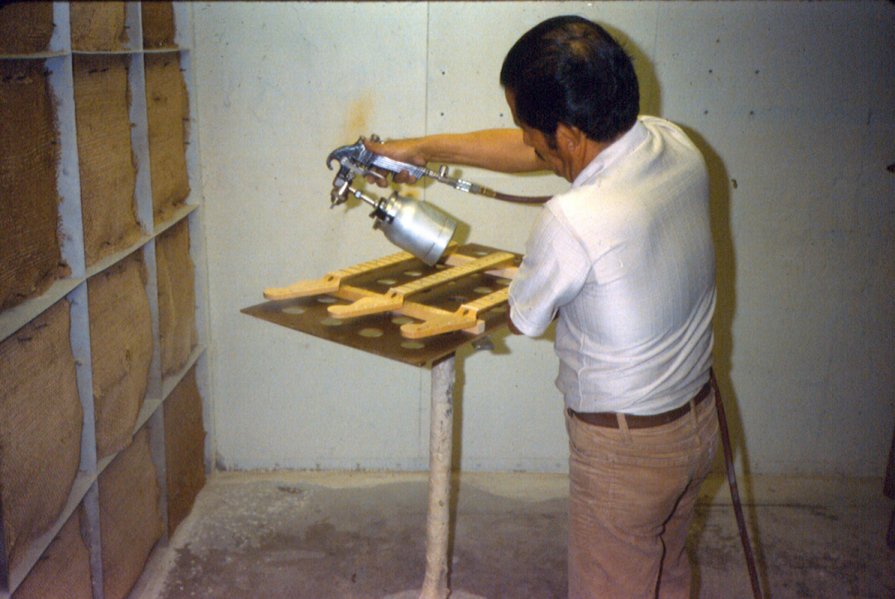 From February 1985 to October 1985 no American guitars were produced. Until 1987, in fact, mostly leftover stock and imported (read: Japanese) instruments were sold. It is a myth, however, that no guitars were made around this time in Corona whatsoever. A group of 4 people built less than 10 guitars per day (one of them was David Maddux, who told me this). Photos of the Corona facility at the end of 1985: 1 2 3 4 5 The 1987 NAMM saw the introduction of the American Standard Stratocaster which started everything from scratch again. Around that time the Custom Shop started, too. Fender opened their new factory in Ensenada, Baja California, Mexico, on 7 May 1987.