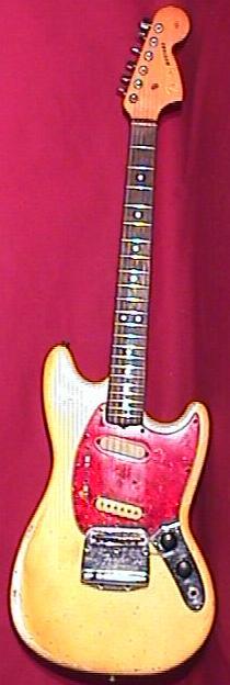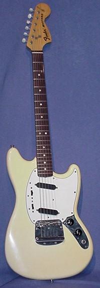 | The Mustang, produced from 1964 to 1981, was supposed to bridge the gap between Fender's 'student' type guitars and the high end ones. Early types have no body contouring on the rear, whereas later ones do. | |||