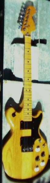 | Remarks: This is an experimental prototype, possibly made in the mid 70's. It's got 24 frets and unusual pickups, a glued in neck with a square heel and a 70's style headstock. Click here for a detail of the plaque on the back. |