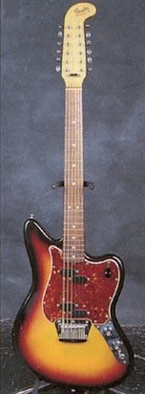 | From 1965 to 1968, Fender produced the Electric XII, a guitar designed especially for the purpose of being a 12-string guitar. There are 12 individual string saddles in the bridge. It was notoriously difficult to tune, and instantly recognisable because of its 'hockey stick' headstock. | |||
